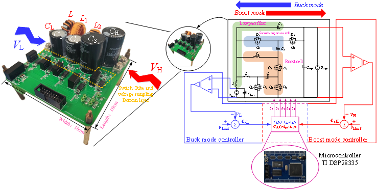 课题组提出了一种具有高电压增益和零电流纹波的可扩展无变压器双向DC-DC变换器。所提变换器主要采用了零电流纹波单元、可拓展升压单元以及开关电容单元来实现低压侧零电流纹波、宽输入电压范围和低开关电压应力的性能。同时,所有的功率半导体器件在不同的工作模式下均可实现零电压切换(ZVS)以确保功率变换器的高效率运行。另外,为应对参数不确定和源、荷突变的问题,进一步建立了变换器的数学模型,研究了所提变换器采用鲁棒控制策略下的稳定边界问题,为实现系统的稳定运行提供了理论依据。