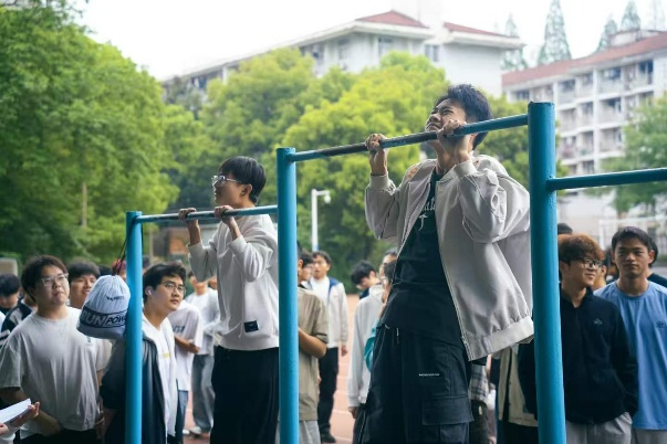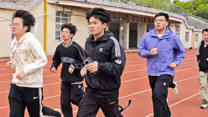 学子纪律严明、拼搏进取的良好风貌。参测学生按性别分组施测,男生组进行1000米跑和引体向上项目,女生组测试800米跑和仰卧起坐。为确保数据客观精准,体育部成员采用秒表人工计时方式对长跑项目逐一记录,各环节流程规范、责任明晰。