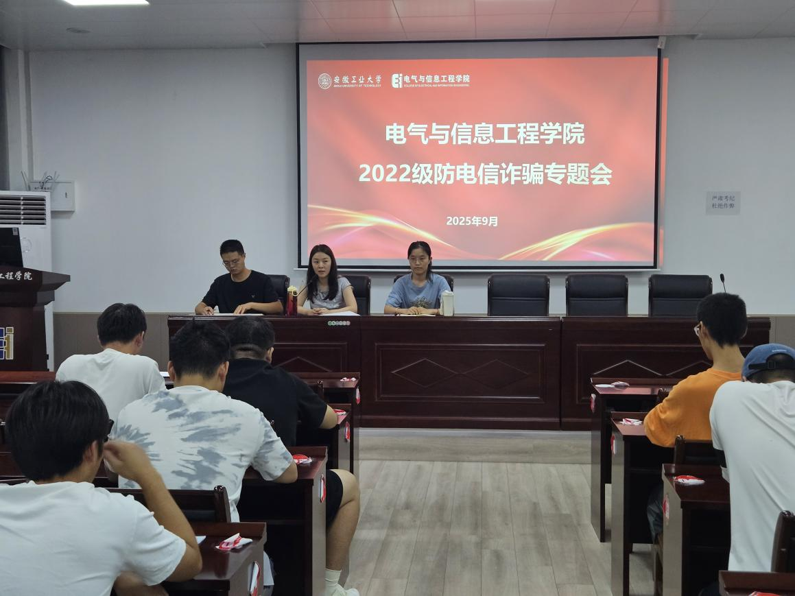 在电气楼113召开2022级防电信诈骗专题会议,会议由辅导员甘如美江、杨恒基、孔瑜琦主持,2022级各班主要学生干部、学生党员参加。