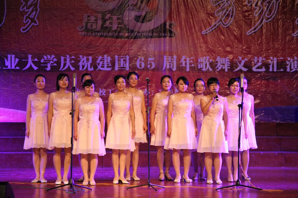 9月29日晚,为隆重庆祝中华人民共和国诞辰65周年,讴歌新中国成立以来,特别是改革开放所取得的巨大成就,抒发我校广大教职工热爱祖国、热爱人民的深厚感情,展示全校师生热爱生活,奋发进取的精神风貌,丰富校园文化生活,学校在秀山校区新大学生活动中心举办了“中国梦劳动美”暨庆祝建国65周年歌舞文艺汇演。