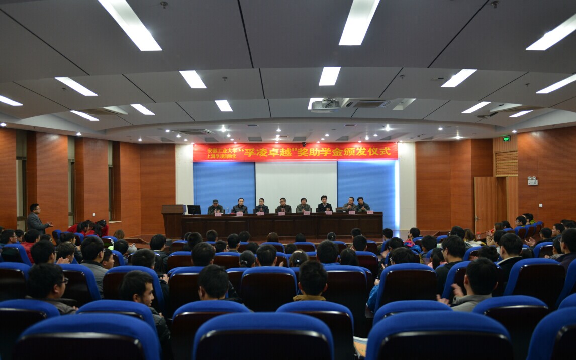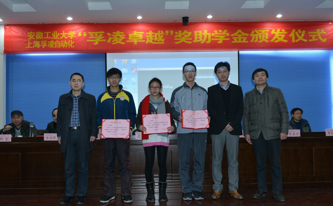 1月4日下午,安徽工业大学上海“孚凌卓越”奖助学金2013-2014学年颁奖典礼在秀山校区图书馆一楼报告厅隆重举行。上海孚凌自动化公司董事长彭正伟先生、总经理刘柯韦先生,学校教育发展基金会办公室主任单桂锋,国产偷拍