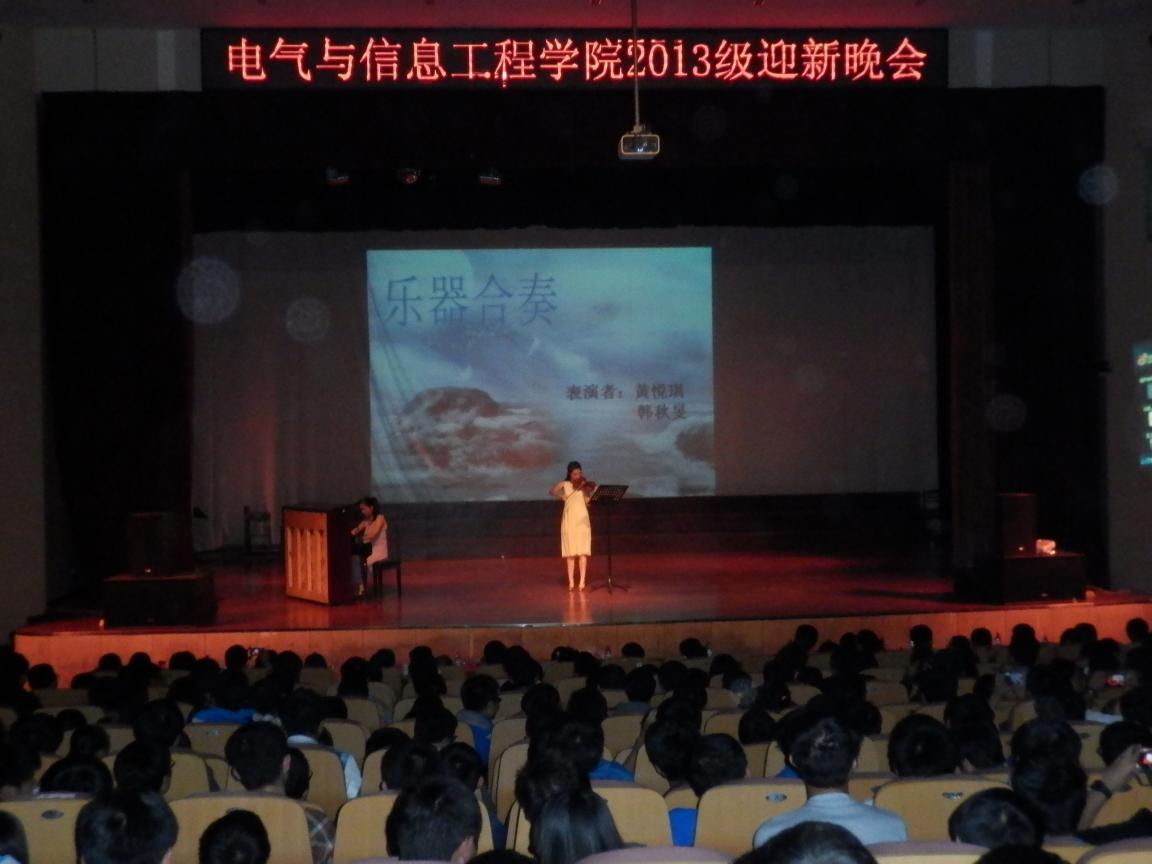 晚会在街舞《舞出我人生》中拉开序幕,随后郭宏副院长上台致辞,他对2013级全体新生来到电院这个大家庭表示欢迎与祝贺,鼓励他们未来属于年轻一代,在大学勤奋努力,让人生焕发新的光彩。随后,晚会节目缤纷登场,异彩纷呈。一首《老男孩》让大家品味那淡淡的感动,手语表演《爱》让现场气氛达到高潮,大家陶醉在爱的海洋;相声演出笑点不断,针砭大学生活流弊;流行歌曲串烧使得现场气氛热烈。