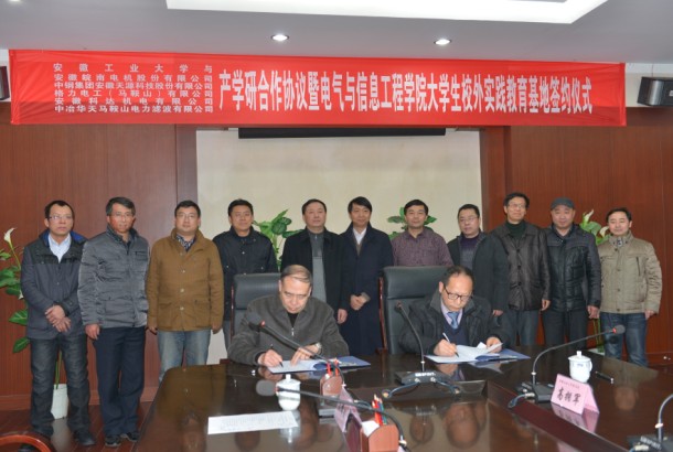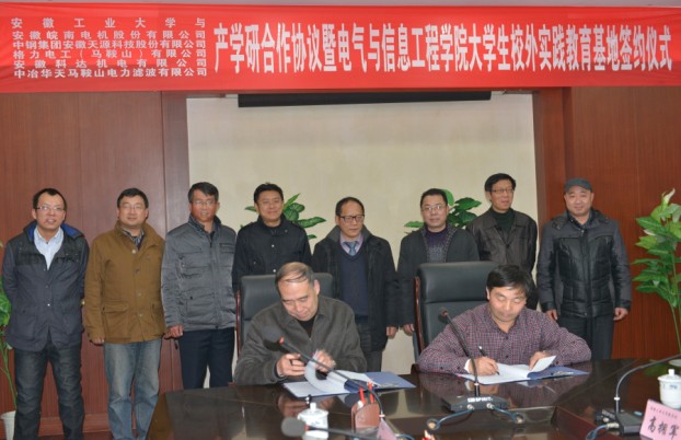 大学生校外实践教育基地签约仪式在我校佳山校区会议中心举行,马鞍山市经济和信息化委员会副主任王黄来,安徽皖南电机股份有限公司等五家知名企业的领导,我校副校长葛芦生、教务处等相关职能部门负责人,电气国产偷拍