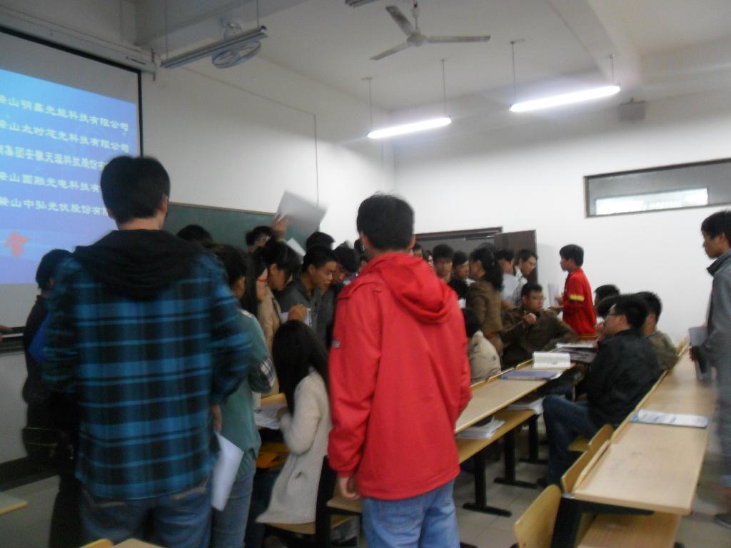 根据本市企业需求情况和2014届未就业毕业生的专业分布情况,重点发动本市对口企业单位来校招聘。中钢集团安徽天源科技股份有限公司、马鞍山明鑫光能科技有限公司、马鞍山太时芯光科技有限公司、马鞍山圆融光电科技有限公司、马鞍山中弘光伏股份有限公司五家企业来到国产偷拍