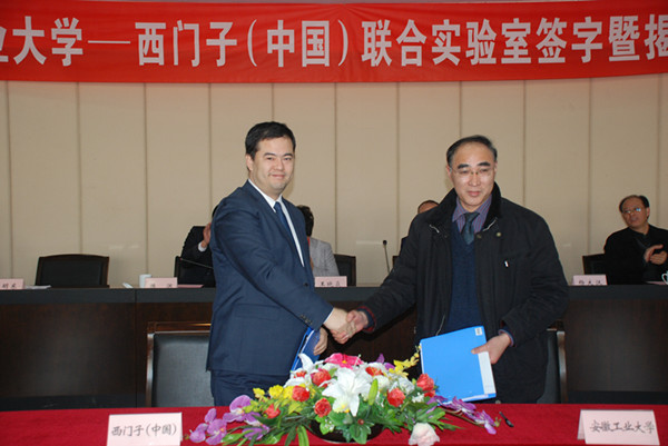 2011年12月22日上午,安徽工业大学与西门子(中国)有限公司共同建设的“先进自动化技术实验室及过程装备与控制工程研究中心”签字揭牌及仪式在风景秀丽的安徽工业大学会议中心举行。安徽工业大学、西门子工业自动化集团,以及应邀前来的马鞍山市政府的领导及学校校办、宣传部、规划处、教务处、科研处、财务处、研究生国产偷拍
