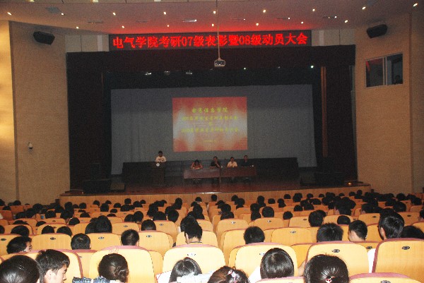 院党委书记孙世民热情洋溢的讲话将本场会议推向了高潮,他着重强调了考研的意义和重要性,鼓励08级同学们下定决心、树立信心、保持恒心,争创新的辉煌。孙世民的讲话高屋建瓴,赢得台下同学阵阵掌声。随后张捍东使用ppt从专业和技巧方面做讲授动员。会议在全体08级同学雄壮的考研誓言声中落下帷幕。