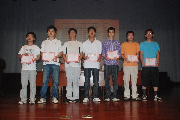 2011届考研情况和考研评奖情况,随后考研获奖学生上台领奖并合影留念。录取在北京大学的仪073班张睿同学代表考研先进班集体发言,以考研数学成绩获得满分录取在上海交通大学的自072班陶响元作为考研个人代表发言,他们都向08级同学传递了“坚持、坚持、再坚持”的理念。