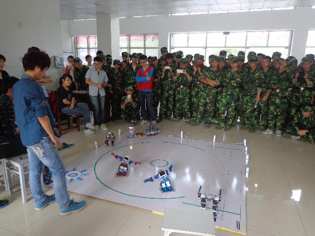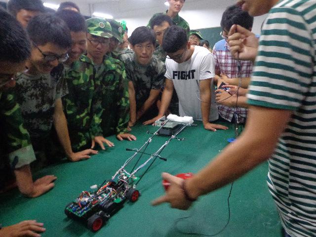 展览现场展出了智能车、轮廓检测仪、双足机器人、仿人机器人、电磁炮、四旋翼直升机等众多高科技作品。创作者为大家做了详细、生动的解说,并进行现场模拟,演示作品功用。很多大一新生都由衷地发出感慨,觉得“牛人”就在身边,并纷纷表示一定要做一件属于自己的科技作品。本次展出的科技创新作品,都是国产偷拍