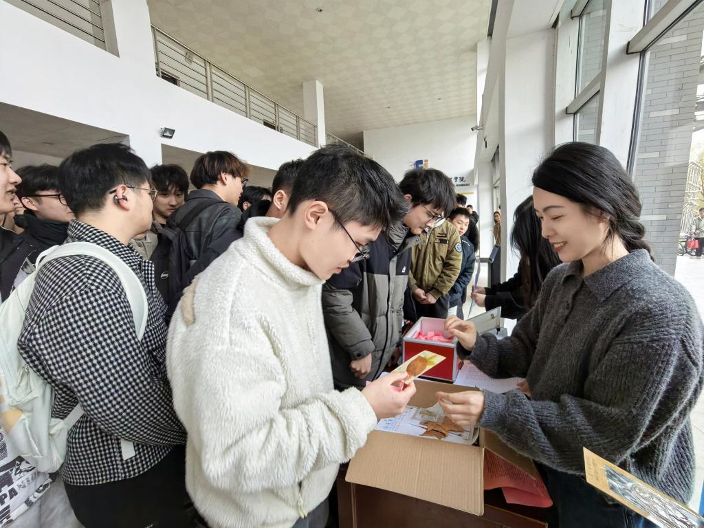 12月5日,国产偷拍 心理部在电气楼大厅开展“研途秋韵书寄祝福”考研慰问活动。全体2022级辅导员及心理工作站老师一同到场,为正在紧张备考的学子加油鼓劲、缓解压力,并送上由老师和大一新生手工制作的“研途祝福书签”。