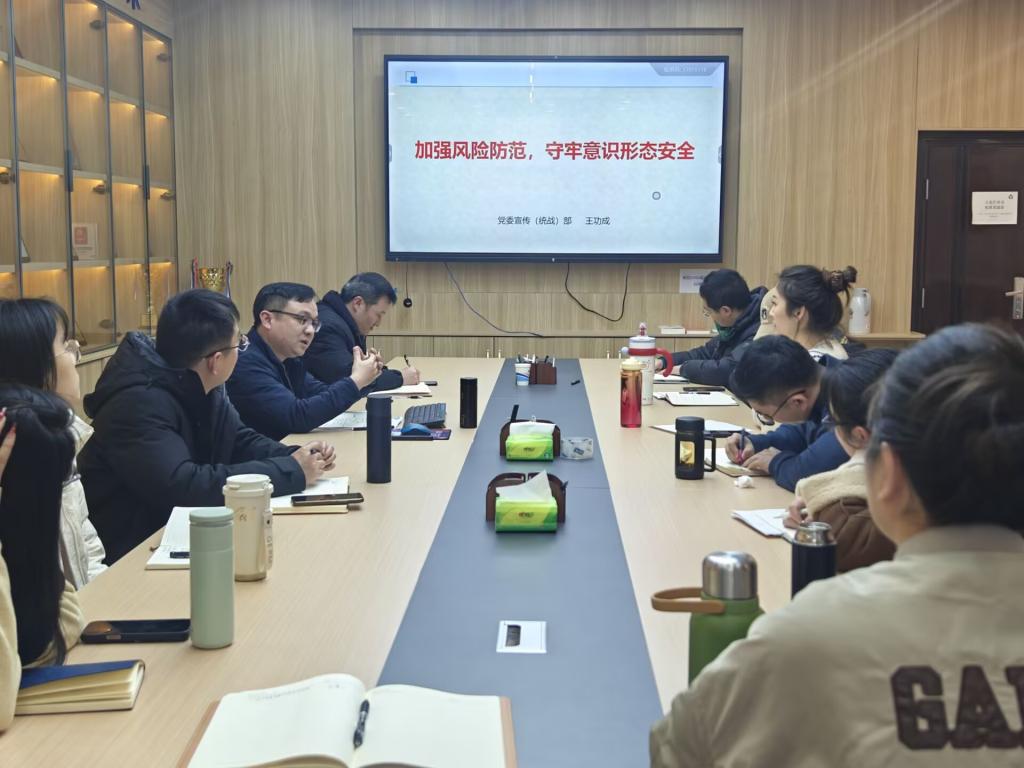 12月24日下午,国产偷拍 在电气楼308会议室举办第三期辅导员素质能力提升培训会,聚焦“加强风险防范,守牢意识形态安全”主题,旨在进一步提升辅导员在新形势下的网络意识形态风险防控能力,筑牢网络安全防线。校党委宣传(统战)部副部长王功成应邀主讲,国产偷拍 党委副书记、纪委书记、副院长孔洋波主持会议,国产偷拍 办公室主任、党委秘书及全体辅导员参加学习。