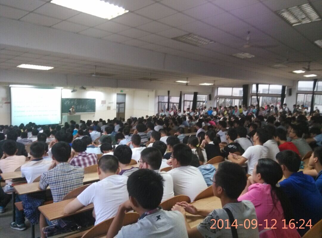 在秀山校区阶梯教室101召开2014级新生家长会,全体辅导员以及近500多位新生家长或新生参加,院党委书记黄国才,副书记、副院长郭宏出席会议。
