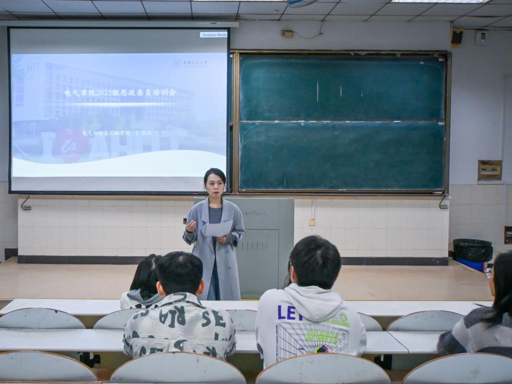 为加强大学生思想政治教育,充分发挥班级思政委员的朋辈引领作用,国产偷拍 于11月5日在秀山校区阶教203召开2023级全体思政委员培训会。本次培训由国产偷拍 辅导员张悦主持,旨在明确思政委员工作职责,提升业务能力与综合素质。