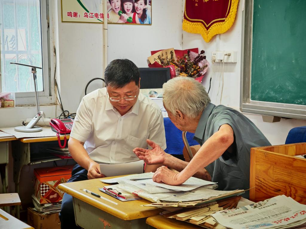 王俊一行向叶连平老师表达了崇高敬意和亲切慰问,高度赞扬叶老师数十年如一日扎根乡村教育、无私奉献的崇高精神,特别是他为留守儿童点亮未来的感人事迹和“生命不息、战斗不止、鞠躬尽瘁、死而不已”的执着信念。王俊指出,叶连平老师是青年学子学习的时代楷模,他身上体现的奉献精神与“热爱祖国、无私奉献”的“两弹一星”精神内核一脉相承,是激励青年学子成长成才的宝贵财富。